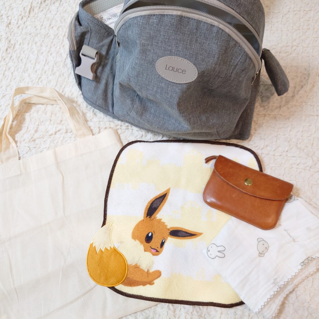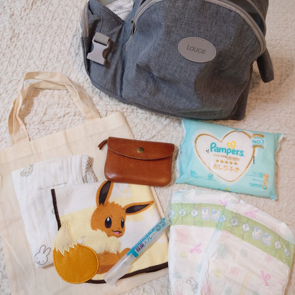 ヒップシートと合わせて、実際にお出かけするときの荷物も一緒に紹介します!