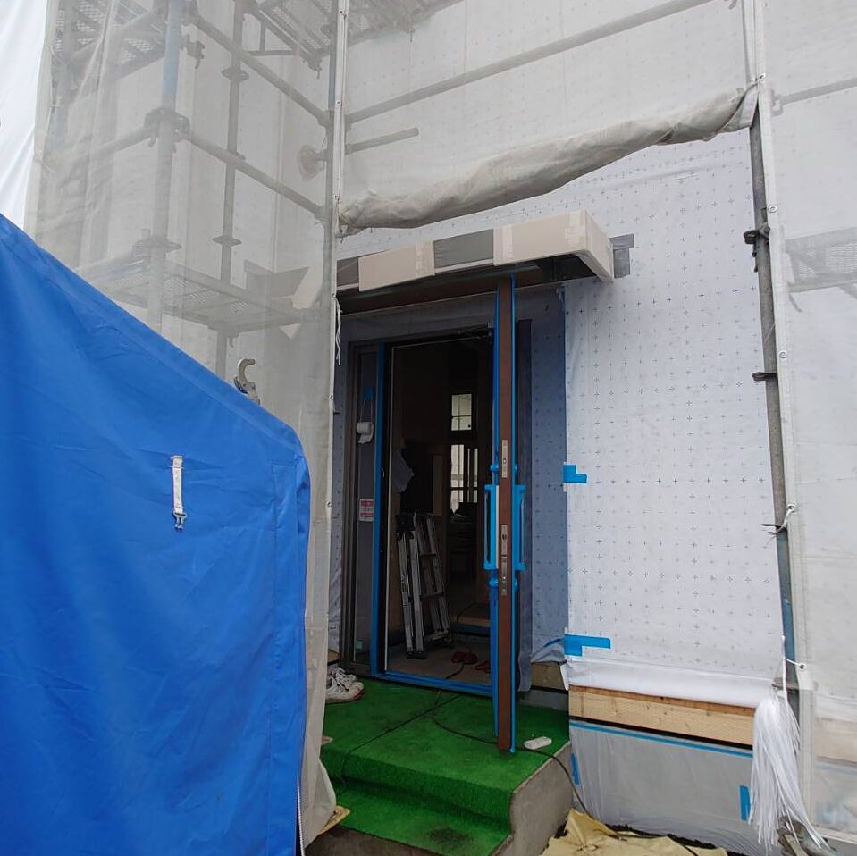 外壁も始まりました~!外壁屋さんに挨拶&差し入れしました(/・ω・)/