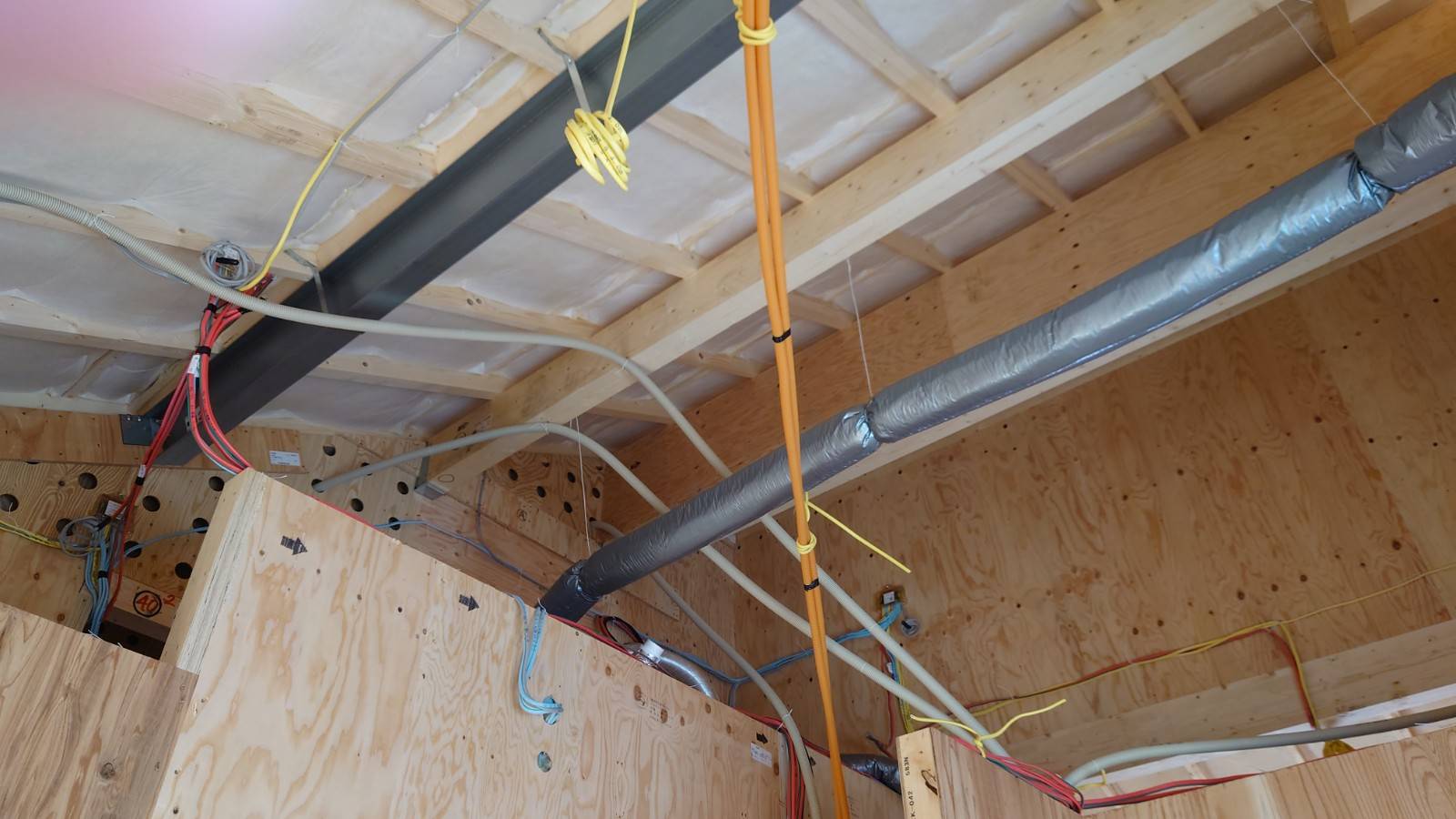 天井には一部、石膏ボードが貼られていました。