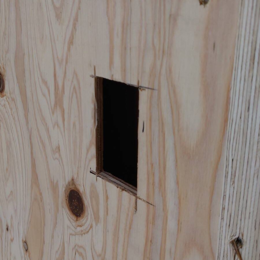 猫ドアが取り付けられるところに穴が開いていました!