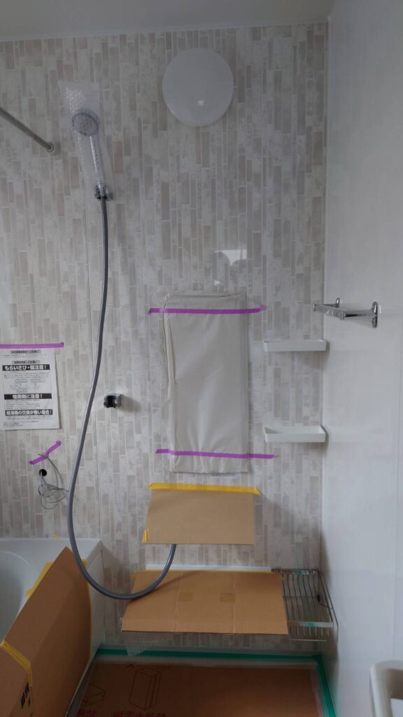 採用した仕様はまた後日まとめますが、物干しバーを2本にしたり、シャワースタンドをフックに変更したりしています。鏡は標準サイズにしました。扉は折れ戸です。